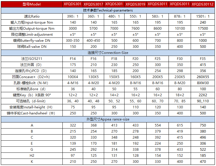 該系列蝸輪箱適用環(huán)境廣、功能全面、形式多樣(有手輪式、手輪帶鎖式等),產(chǎn)品共有7種型號。